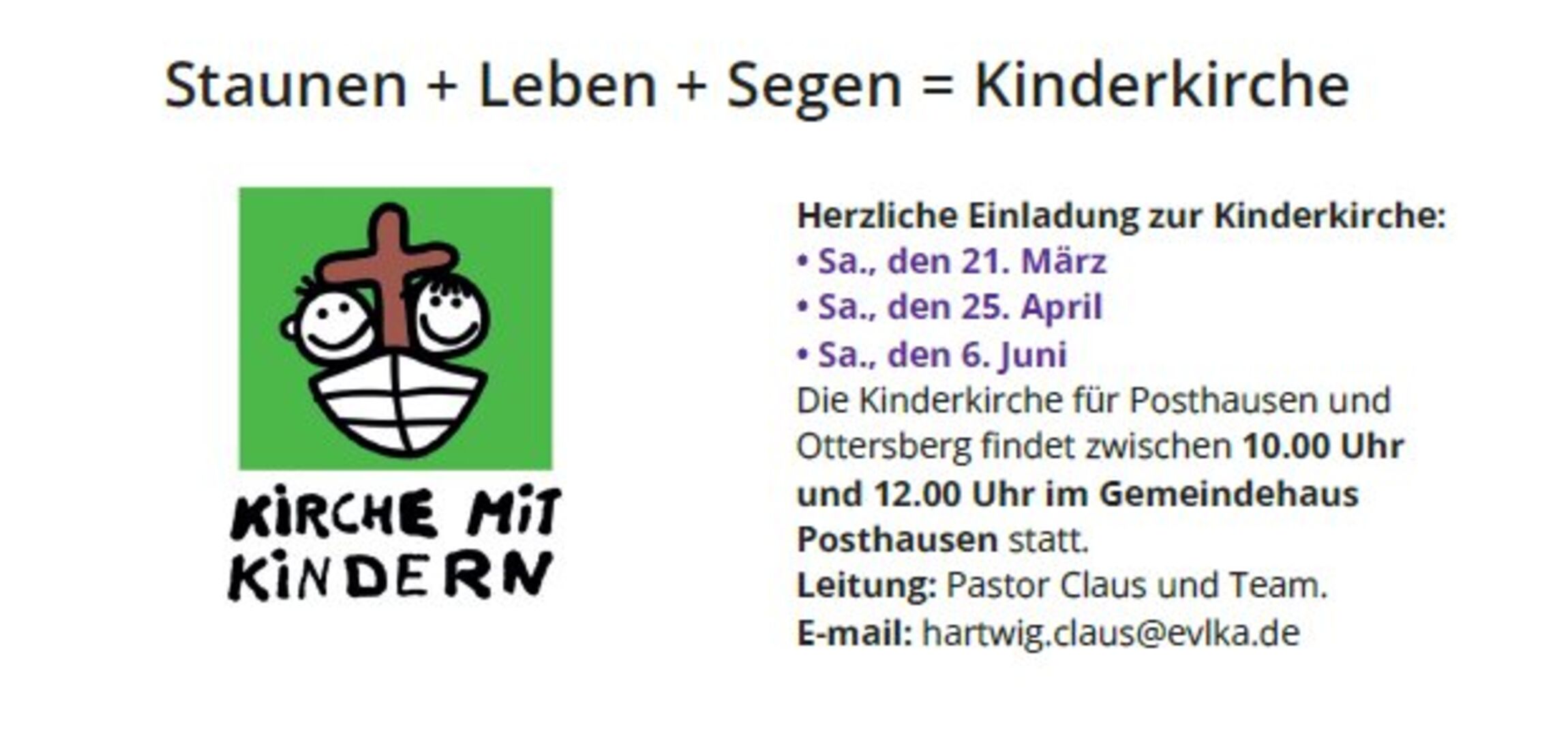 Die ev.-luth. Kirchengemeinden Posthausen und Ottersberg laden herzlich zur gemeinsamen Kinderkirche ein